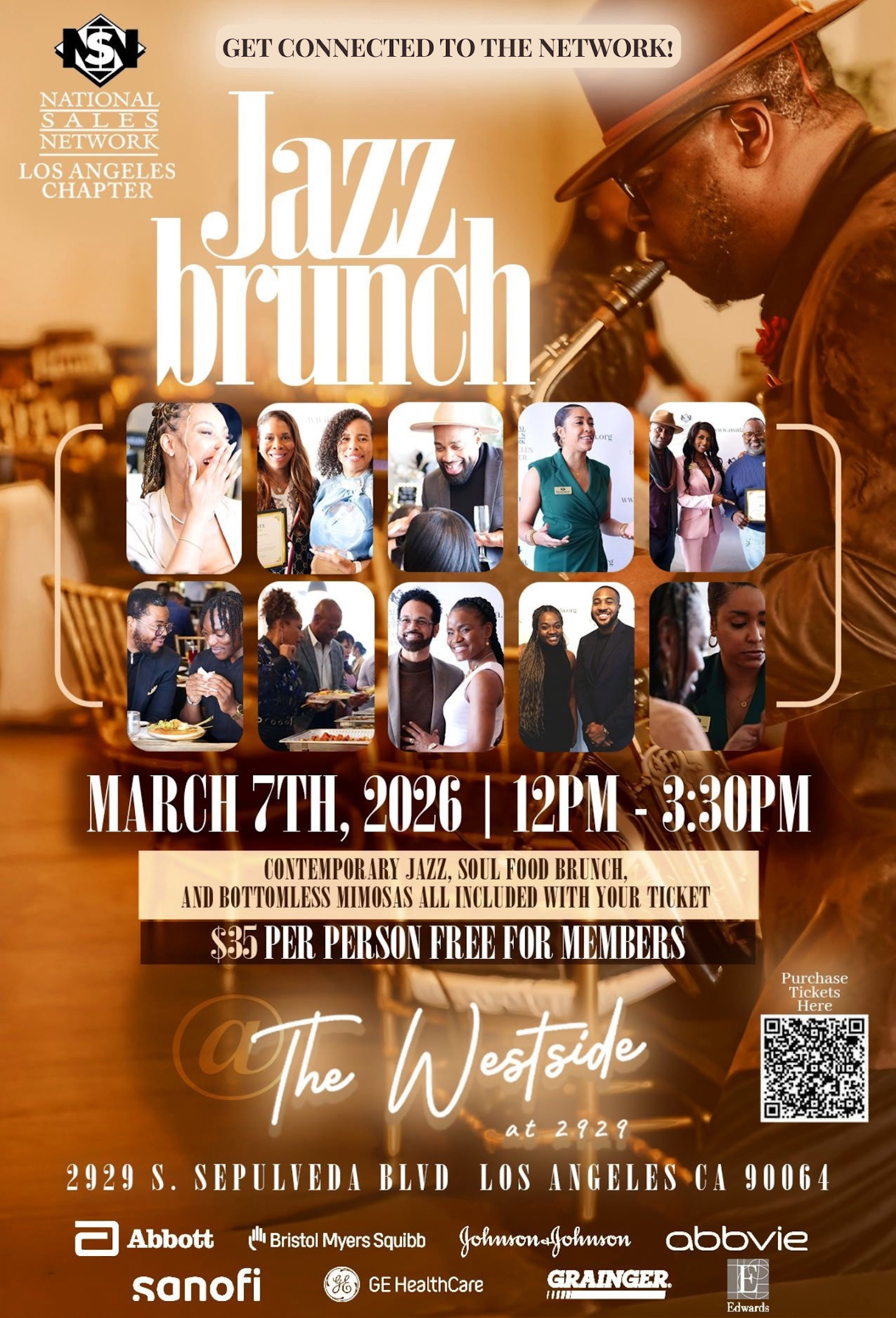 Join us for an afternoon of smooth jazz, delicious food, and great company at the NSN LA Jazz Brunch! Get ready for an unforgettable afternoon at the NSN LA Jazz Brunch on Saturday, March 7, 2026, from 12:00 PM to 3:30 PM, at 2929 S. Sepulveda Blvd., Los Angeles, CA 90064. Don't miss this opportunity to unwind, recharge, and connect with the vibrant NSN LA community. Whether you're looking to expand your network, explore NSN's resources, or simply enjoy a relaxing brunch, this event has something for everyone. Reserve your spot today and join us for an afternoon of jazz, networking, and inspiration! |